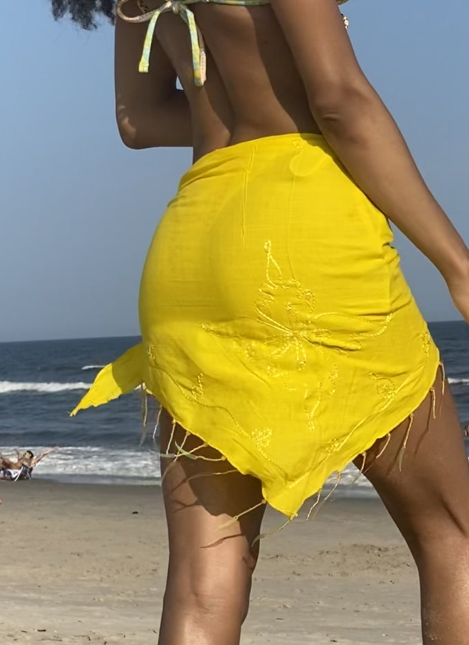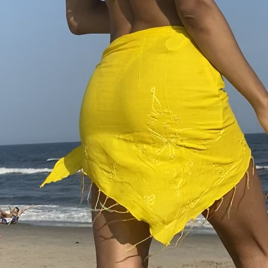 These triangular sarongs are made of 100% breathable rayon with sequins and embroidery. They come in various colors!