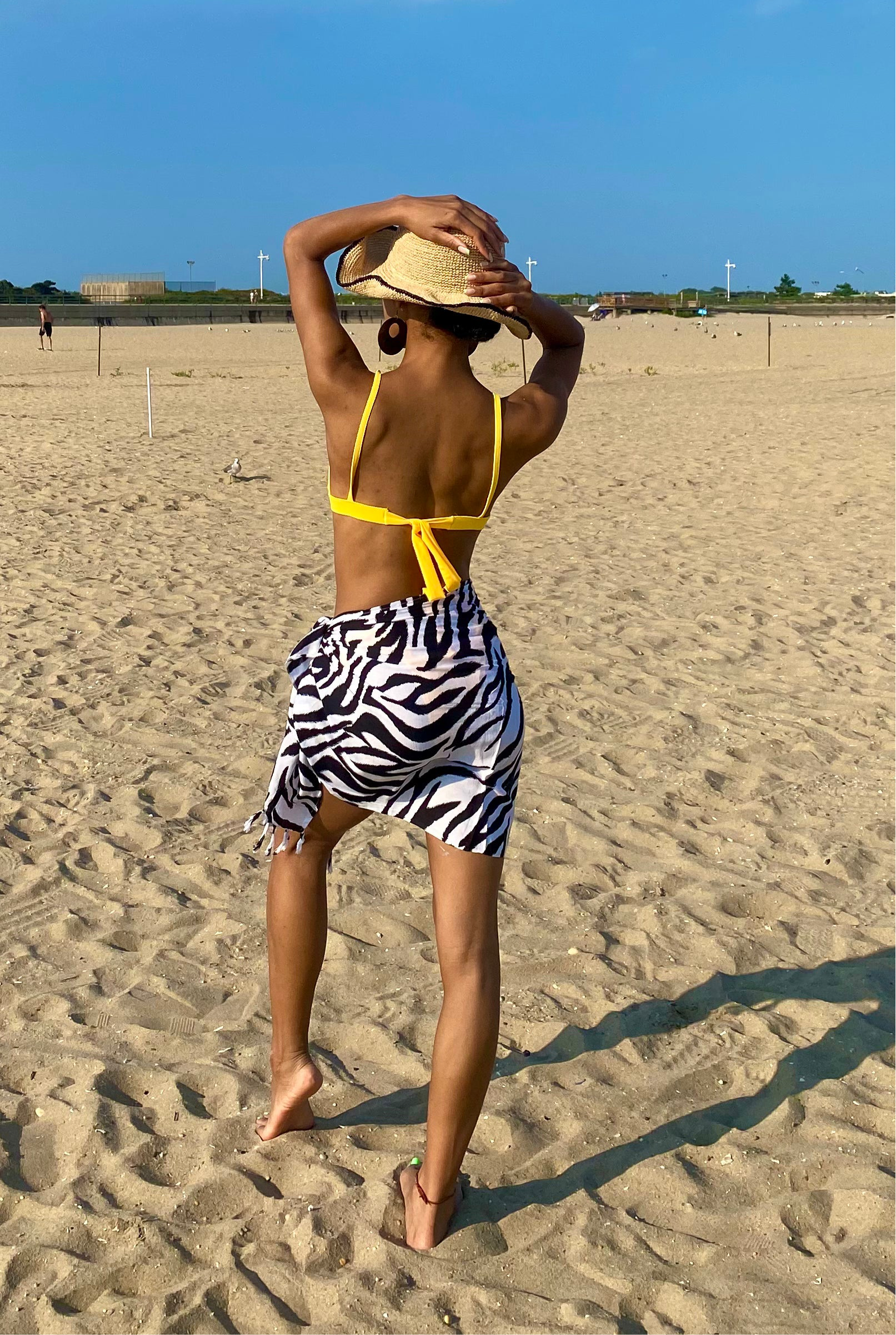 KIKOMI Says: Rock your Mini as a chic headwrap or double up with the standard-size Zebra Stripe Sarong as a bandeau top for a coordinated, statement-making look.